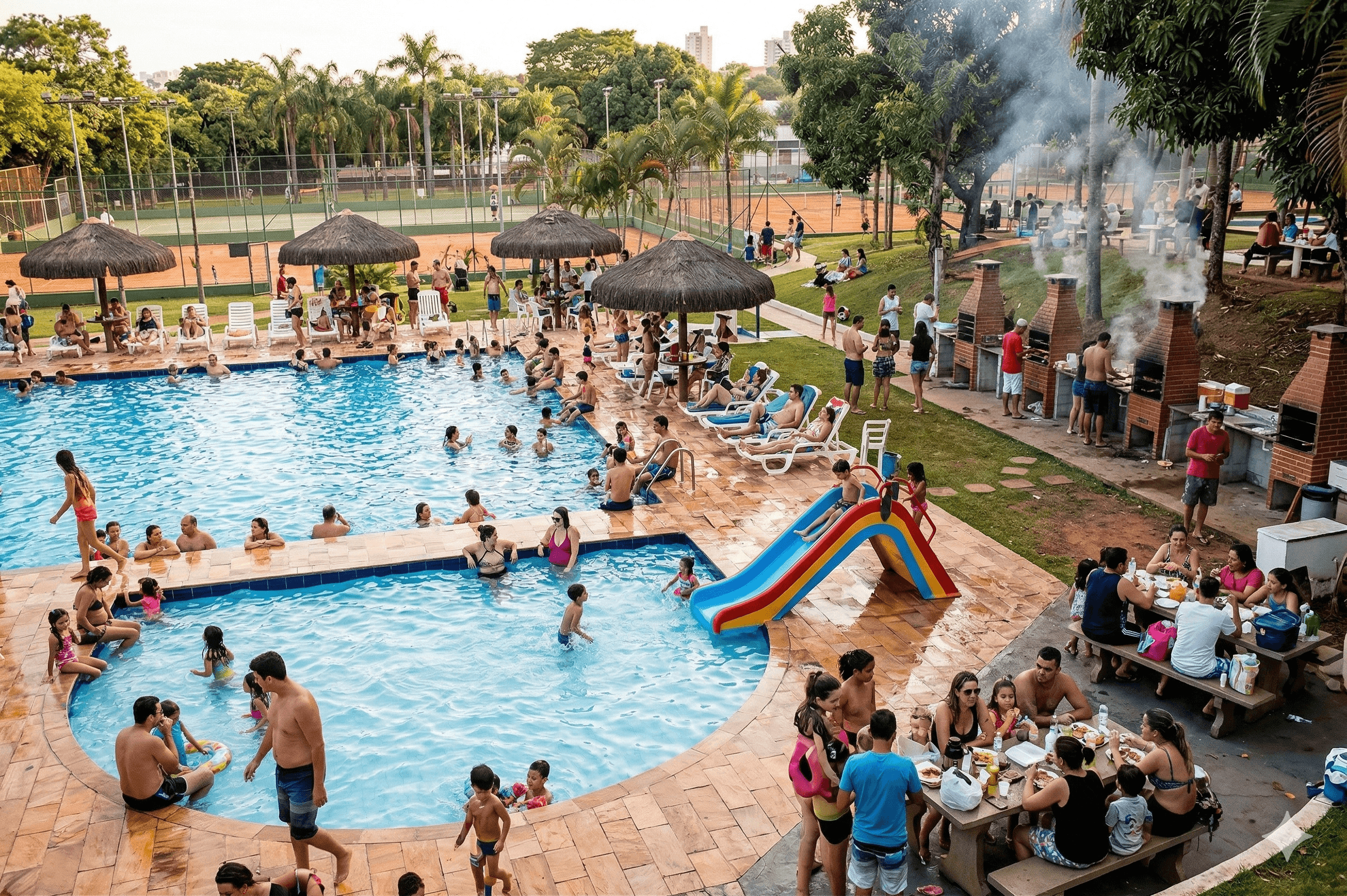 Gestao completa de socios, dependentes, titulos, quadras, piscinas e eventos.